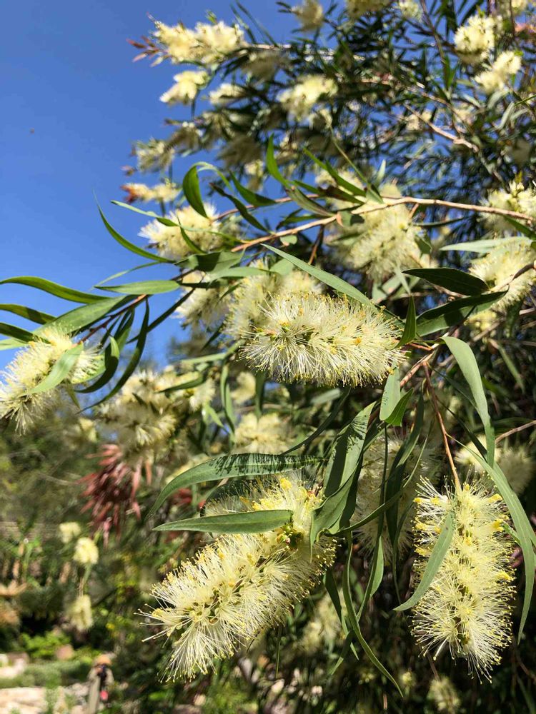 ブラシノキ、白い花を初めて見ました!青空に映えて美しいです。
