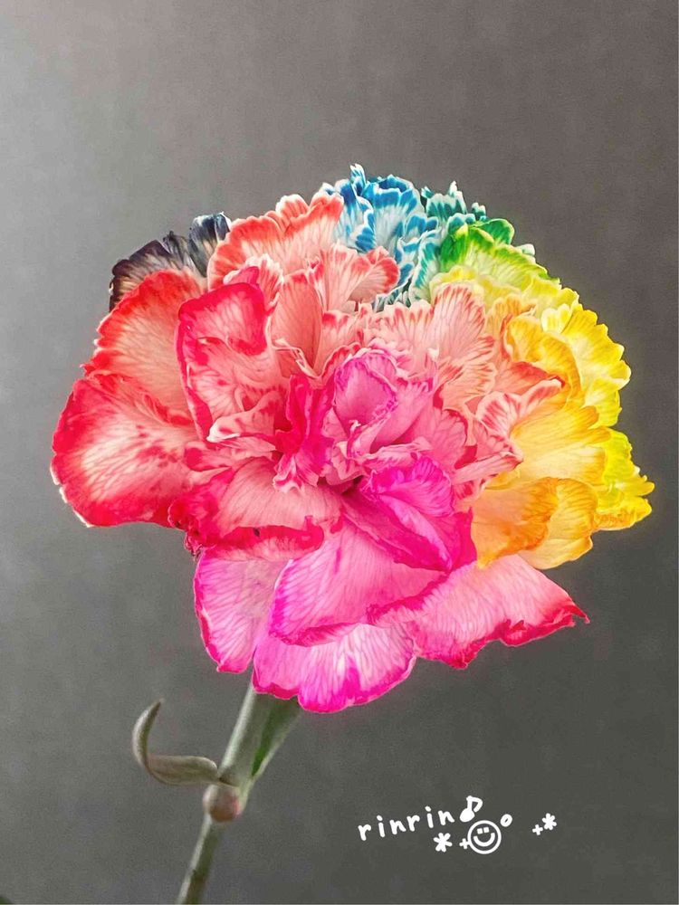カーネーション自体はカラフルなインク吸わせて加工しまくりでこの色だよ😂