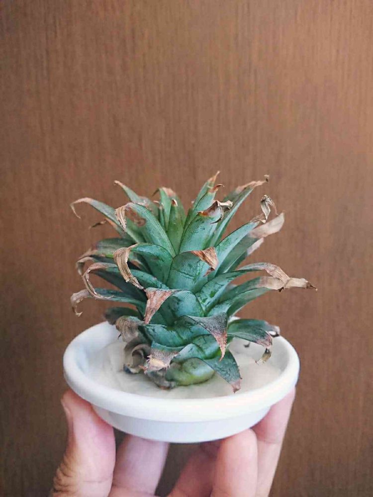 台湾パイナップルって、葉っぱのところが 小さいので、盆栽鉢に植えてみました☝️