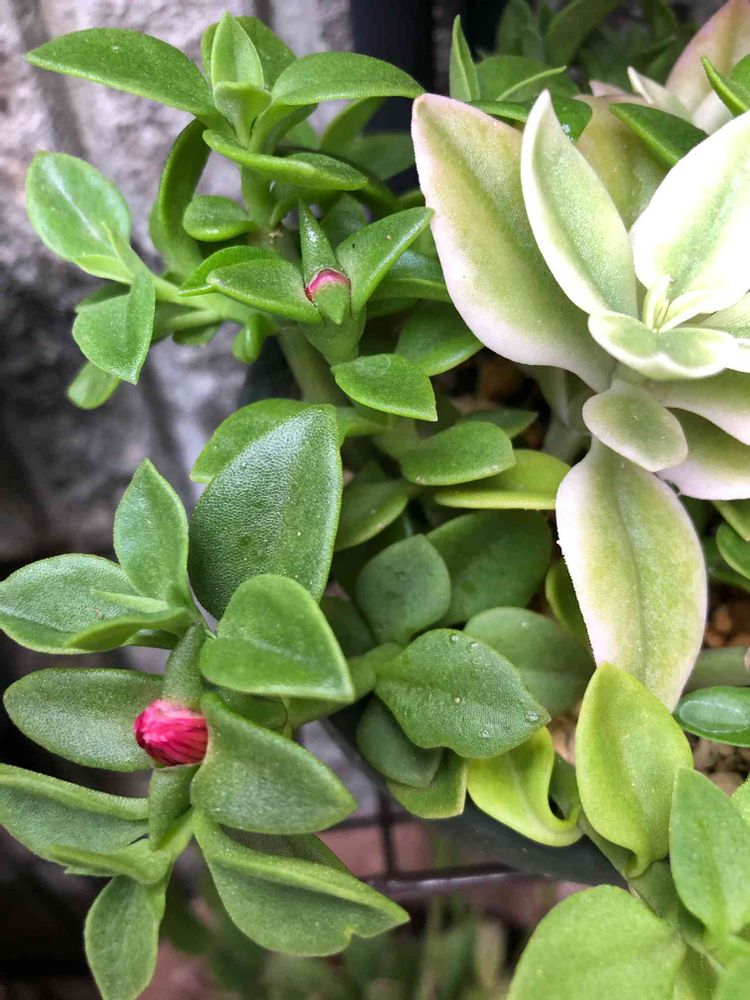 常緑の品種と斑入りの品種があり、斑入りの品種は気温が秋以降の涼しい時期に、葉の縁がピンクに紅葉します。寒さにも意外に耐えます。