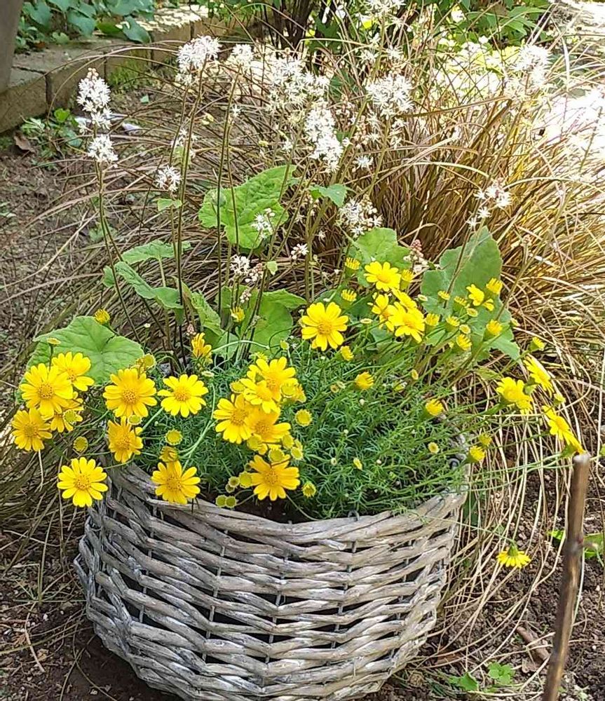 可愛い💛💛💛👏👏👏かごの中の黄色い花😊✌✌素敵(*´∀`)♪