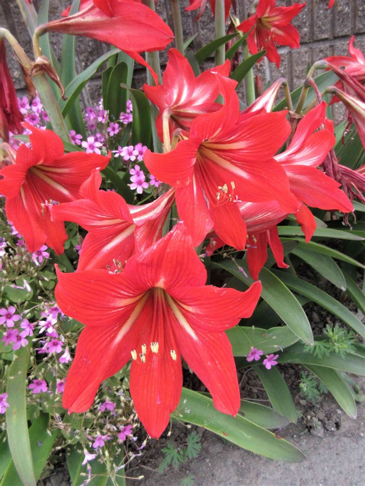 塀沿いに真っ赤なアマリリスがたくさん咲いていて美しかったです😊