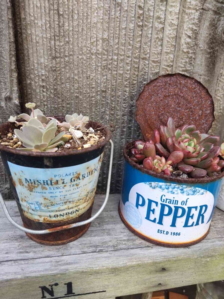 サビサビ缶がいい味出してる多肉ちゃんたち
