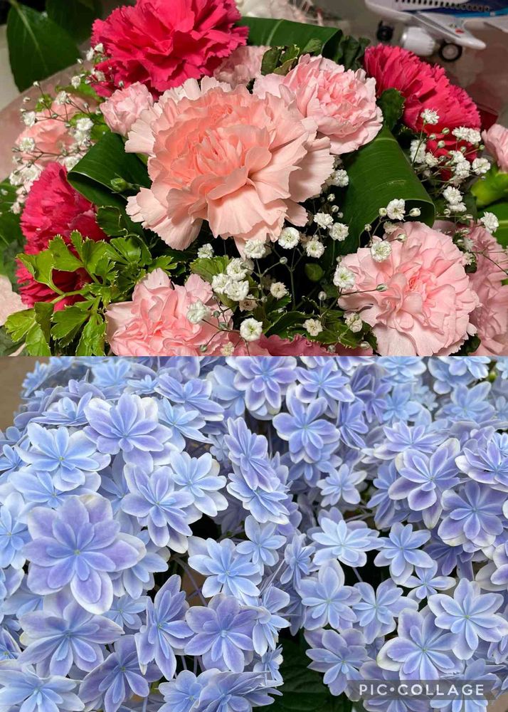 カーネーションは娘さんから、紫陽花は逆に、お義母様へのプレゼント😊
