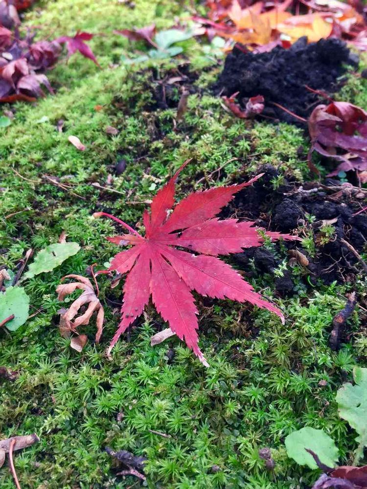 みずみずしい苔青と枯れ紅葉の対比が、ちょっといい感じですかね😌