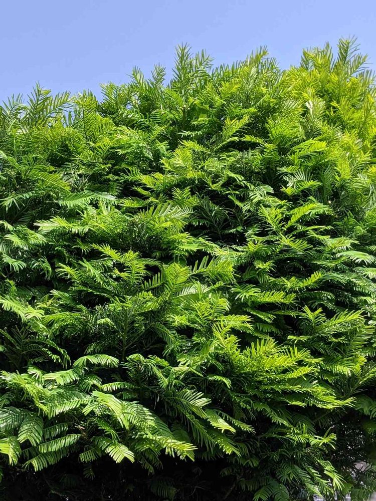 ごめんなさい、違ったかも。メタセコイアは落葉樹なので、冬は葉っぱが落ちるんです。一年中緑となると別の種かもです。