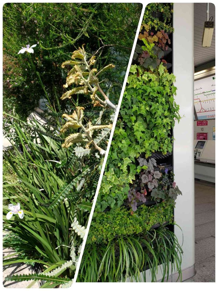 右側がPARCOのある東口。パネルが*本物*の植物。水の線が通っています。左側が県庁や調神社がある西口。アヤメがあったり ギザギザの葉の植物が見た事なく形がお洒落!植物の名前を知りたい。イヤ調査もします。葉っぱが大好きなので、、、