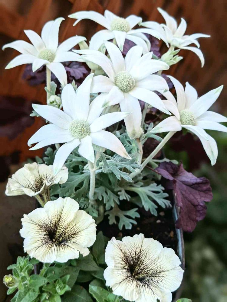 バルコニー/ベランダ,フランネルフラワー エンジェルスター,ペチュニア カプチーノの投稿画像
