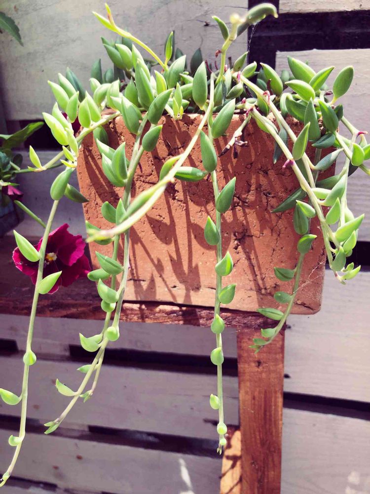 うちはグリーンネックレスを育てています😉☝ 昨年、夏に☆にしてしまったので リベンジです
