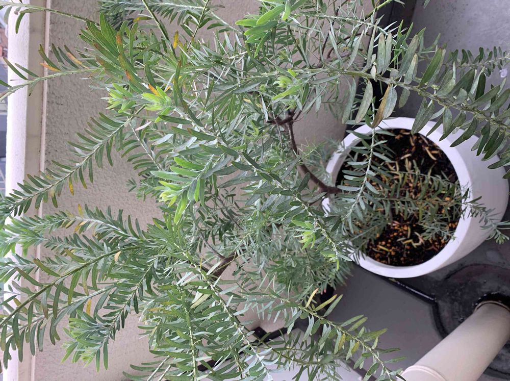 ブルーブッシュの葉が毎日2,30枚ほど落ちてしまいます。また、葉が全体的に黄色っぽくなってきました。