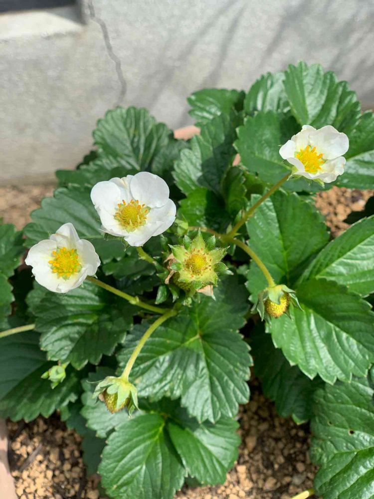 いちごが花咲き、実をつけ出しました💕