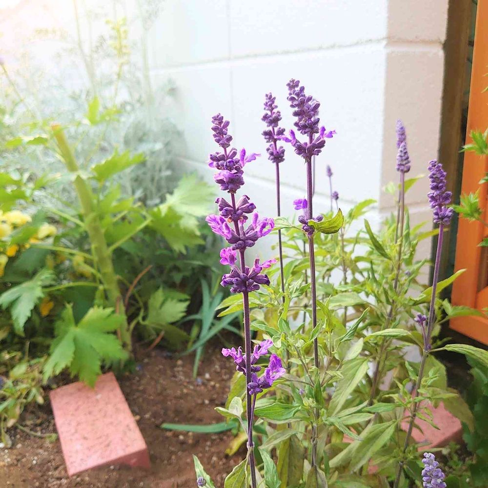 昨年末に株元で切り戻してなにもしてなかったブルーサルビアが、冬越しして咲きはじめました\(よくがんばった)/