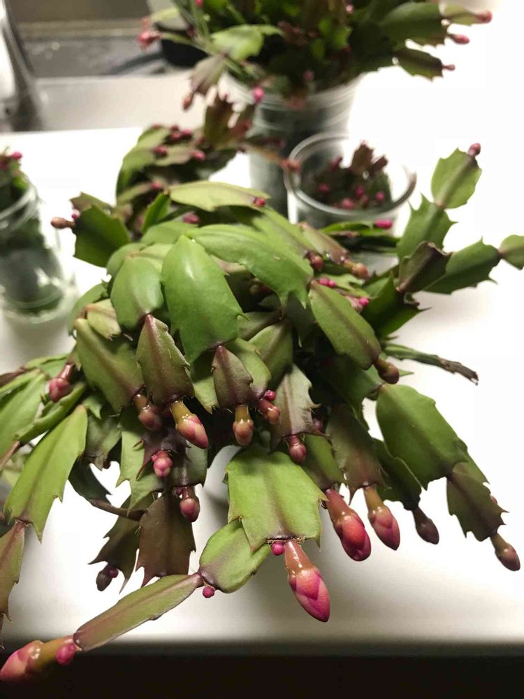 母の形見のデンマークカクタス。のびのびだったのでプチっとちぎって水に挿していたら鉢の方じゃなくてこっちに花芽が!!! 今すぐ植えてあげたらいいのか、いじらない方がいいのかわかりませんっ!!! 少し根は出ています。しかもキッチンの日が当たらない場所にいるんです。。もうどうしてあげたらいいのか困っています。。どなたかお助けください!!! ちなみに去年は咲かなかったんです。。