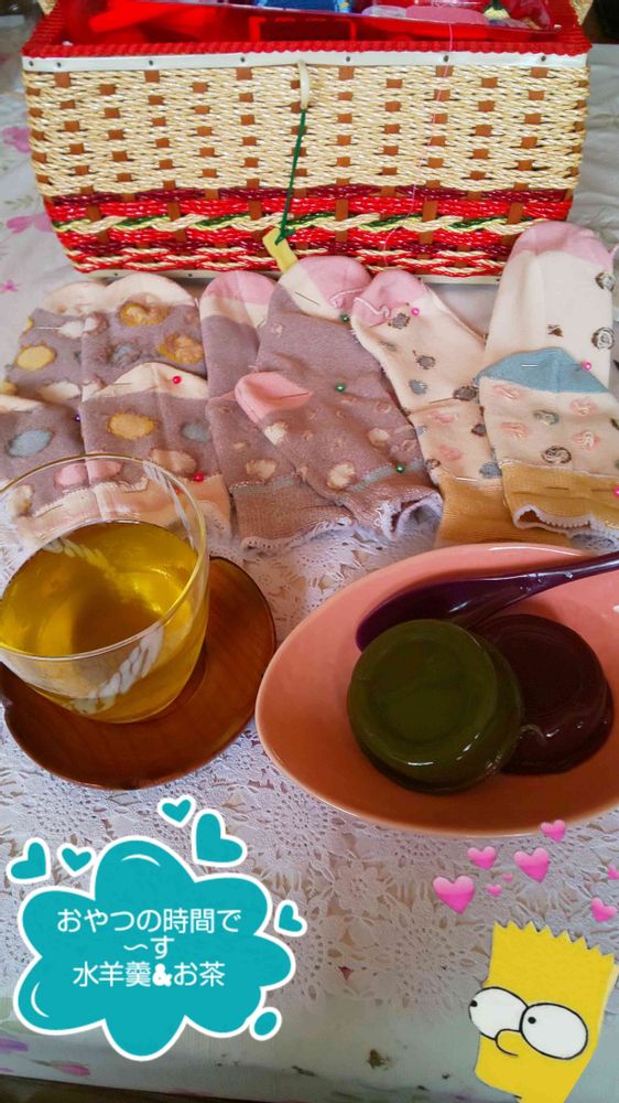 お茶🍵に井村屋の水羊羹で〜す