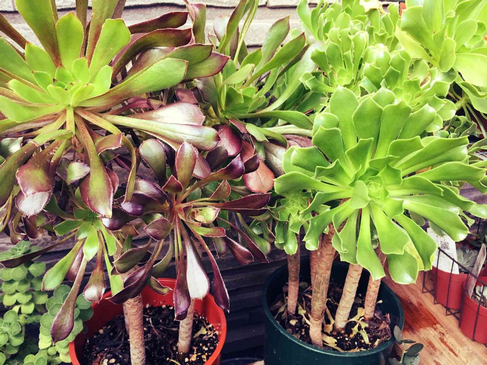 カナリエンスと黒法師。黒法師は日照不足のために緑が強くなってます。慌ててお日様の元へ…綺麗になってくれるといいなぁ