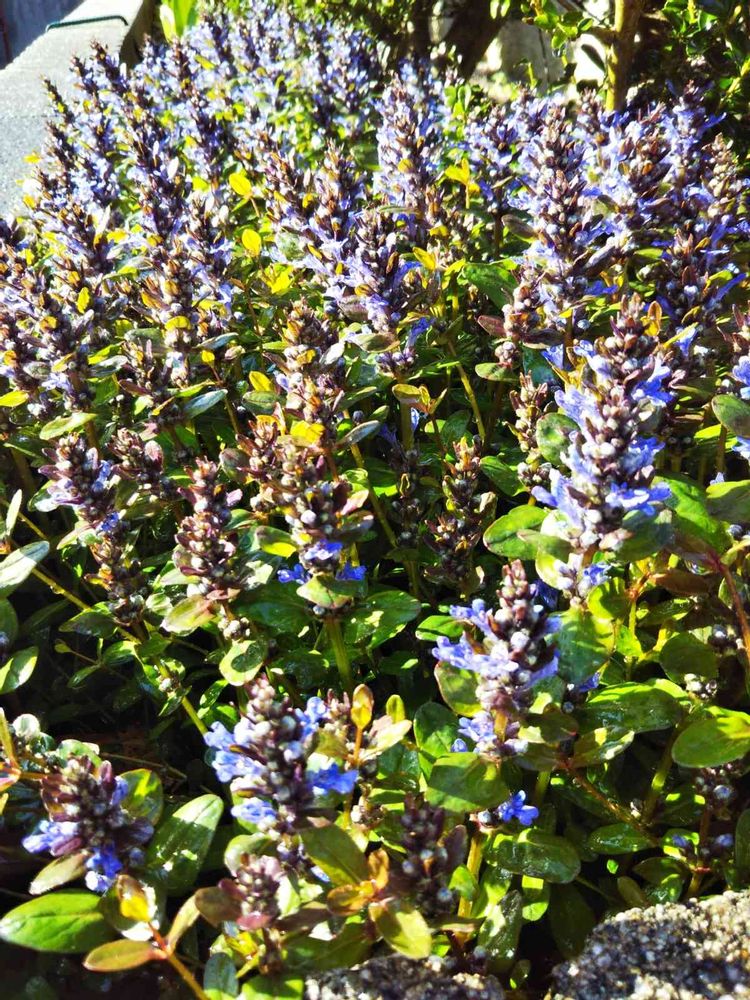 アジュガ チョコレートチップそろそろ満開になります。大雪で昨年より1~ 2週間遅れてるみたいです🙇どこかで調整するでしょう。👵大好きな花です😃