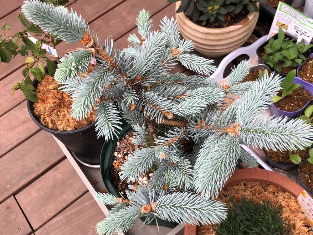 これは松みたいな感じって言いますか針葉樹なんですね〜。触ってもみると意外にしっとりしていましてチクチク感はありません。育てるのが難しいそうなのでドキドキです。