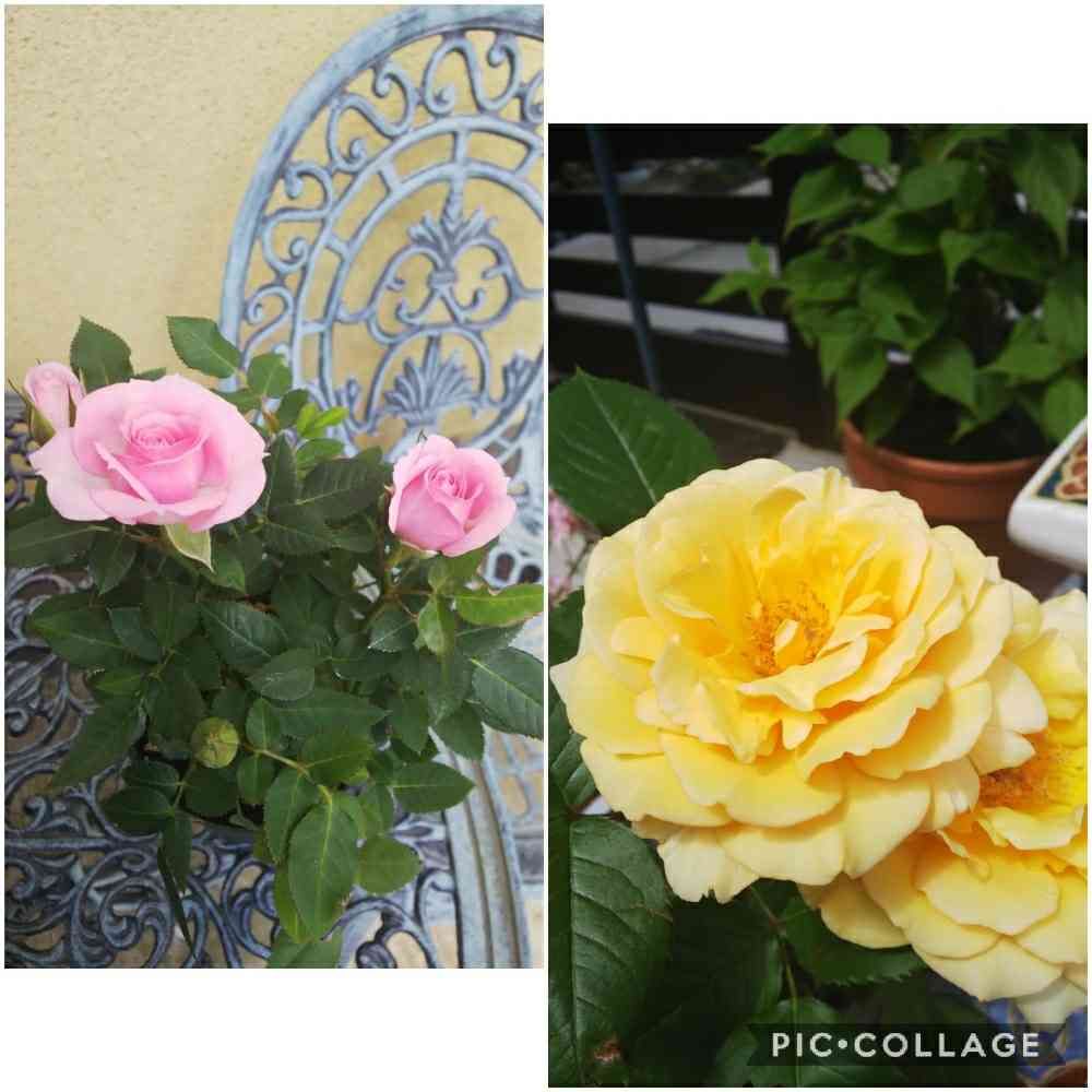 ミニバラと黄色のアンバークィーン💛香りに引き寄せられて買ってしまった。何処に植えようかなぁ〰️😍