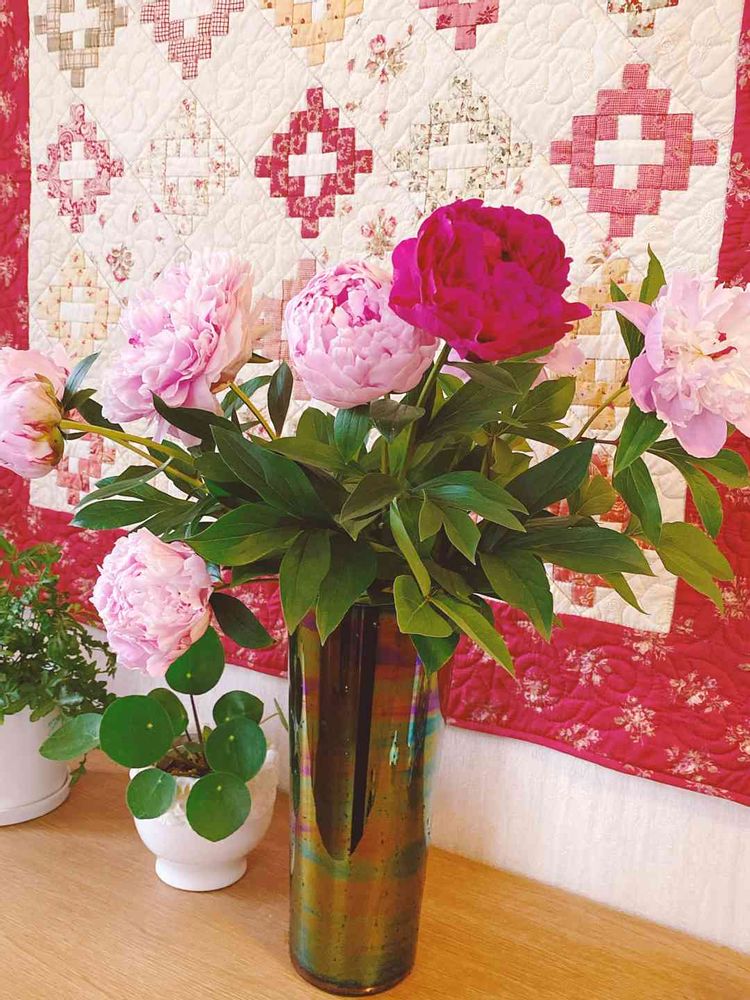 芍薬とキルトで、疲れて帰宅しても玄関で元気になれそうですね😄💓
