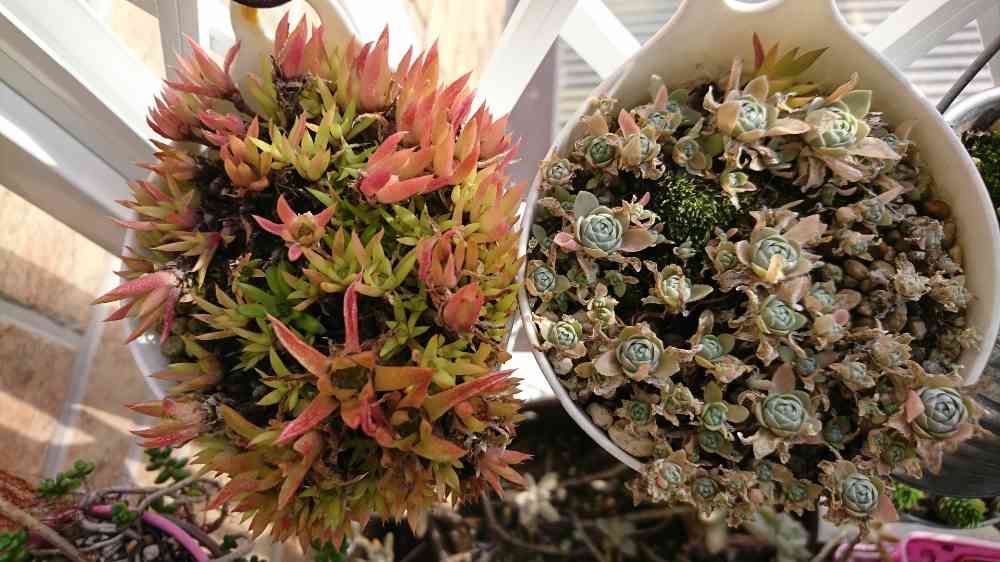 昭和さんと、子持ち蓮華さんが、一足お先に、冬支度をしたようです😳