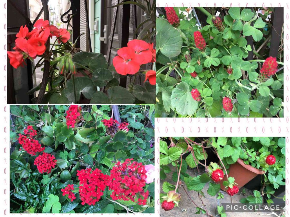 そういえば今日は真っ赤な火曜日だった。赤のゼラニウム、満開のカランコエ、新しく買ったストロベリーキャンドル、はびこってきたヘビイチゴで参加します^o^。