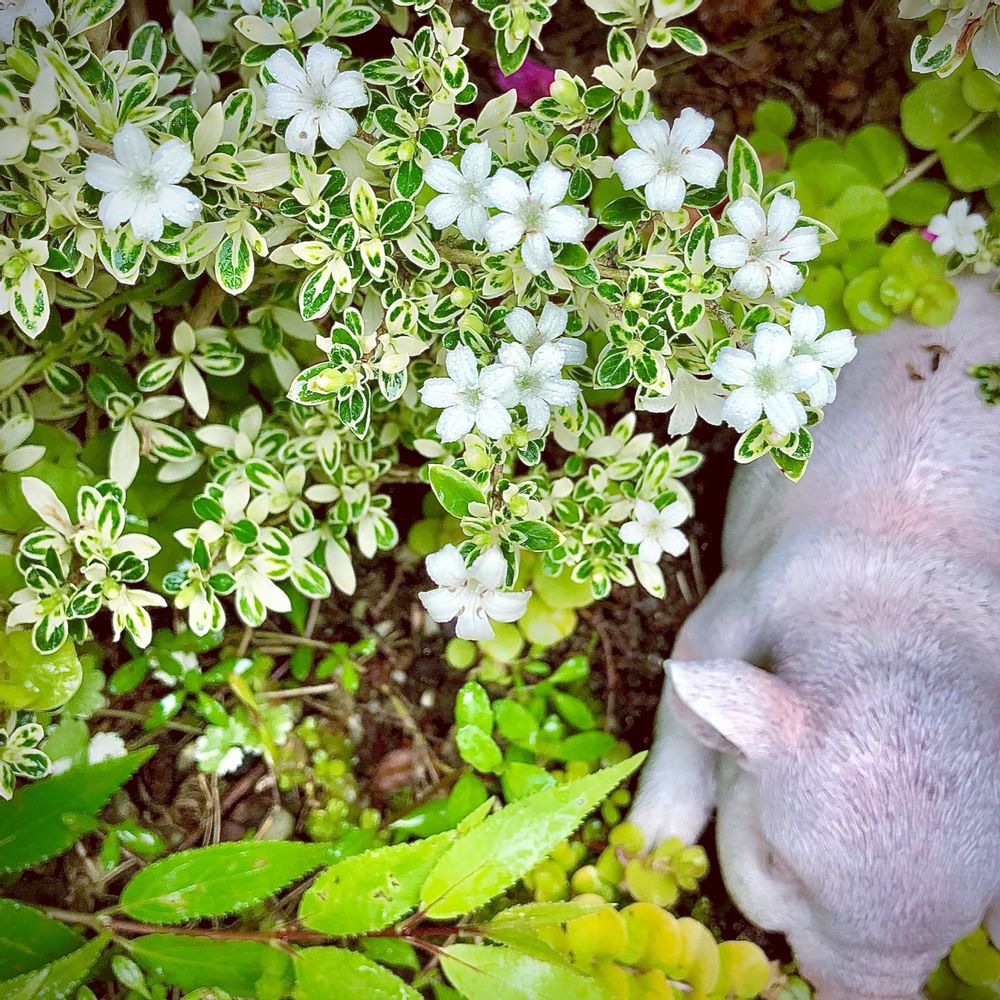 ヒメウツギが終わり、隣りに植えている斑入りハクチョウゲが咲き出しました♡