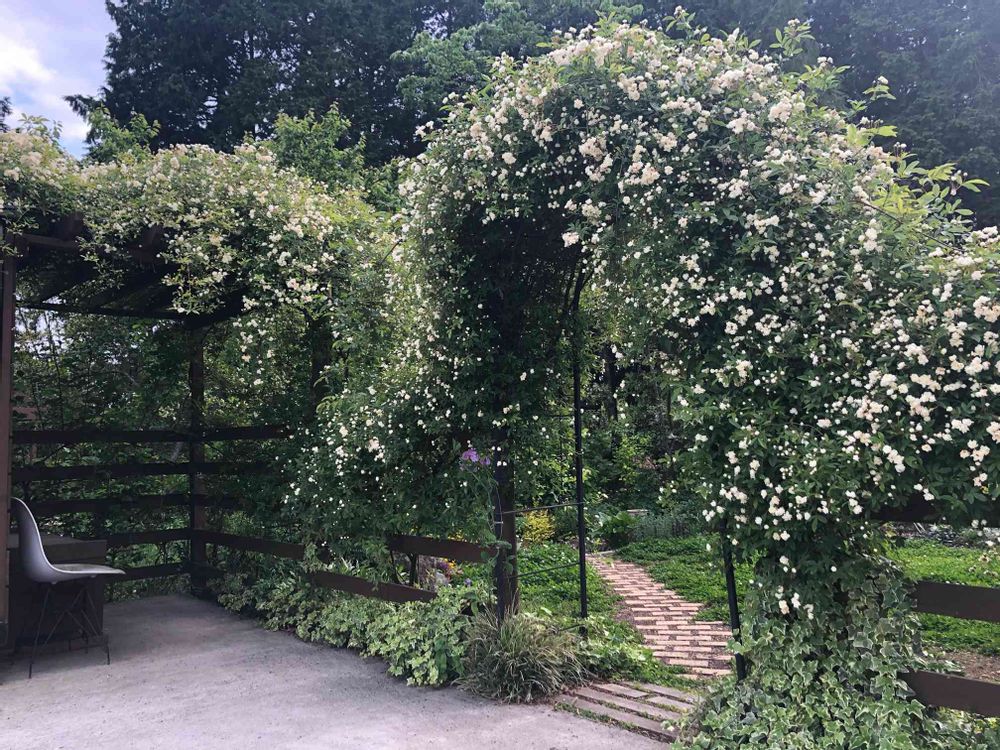 フェンスからパーゴラへ、のぼりはじめてから早かくて、もうもっさもさ〜ですよ 笑