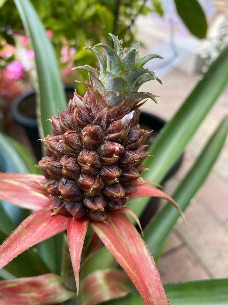 実が成るのだから花が咲くのは当たり前なのかもしれませんが、🍍の花を想像したこともなかったので本当に驚きました👀‼️😍⤴️