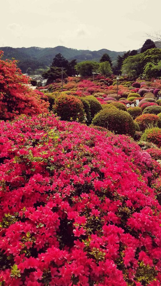 鶴峯公園のツツジは真っ赤で綺麗ですね!よく剪定もされていて、形も良いです。