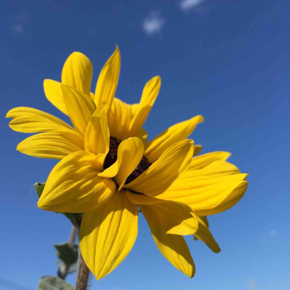 だんだん風が冷たくなってきましたが、秋晴れの気持ちのいい空でした。私もひまわりと思っていますが、この時期に咲くのかしらと…。夏より小ぶりの子でしたよ♡