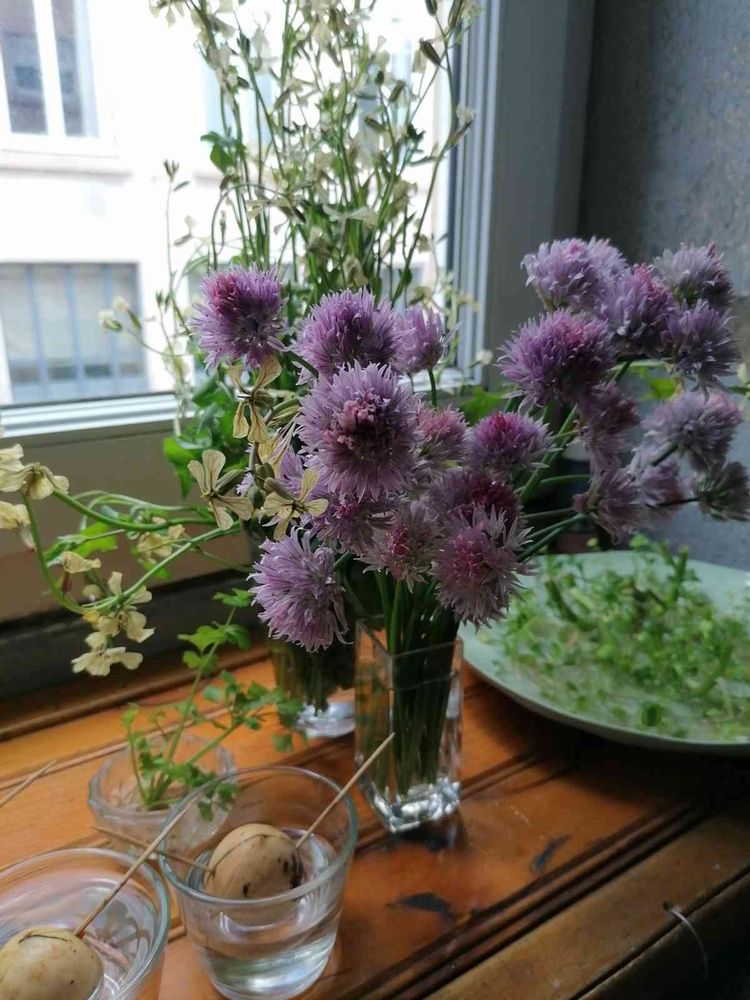 ひとしきり花たちを食べ切ったので今はクレソンがにょきにょき伸びています!!アボカドもとてもゆっくり成長しています!!