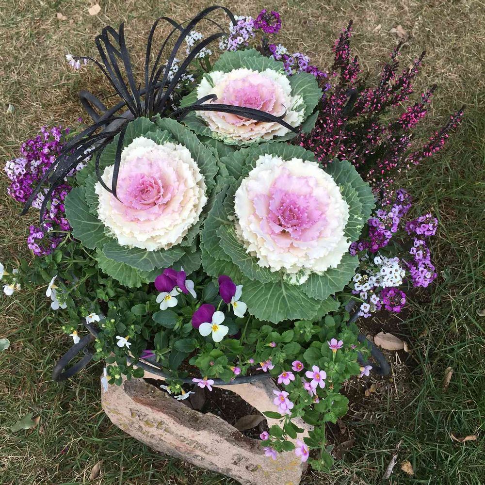 ハボタンの寄せ植え やっと出来上がったよ😊🎶