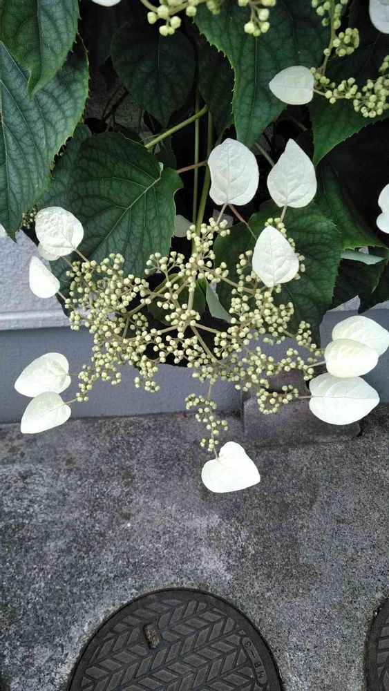 壁面に張り付いた蔓状の植物で イワガラミに間違いないと思います。