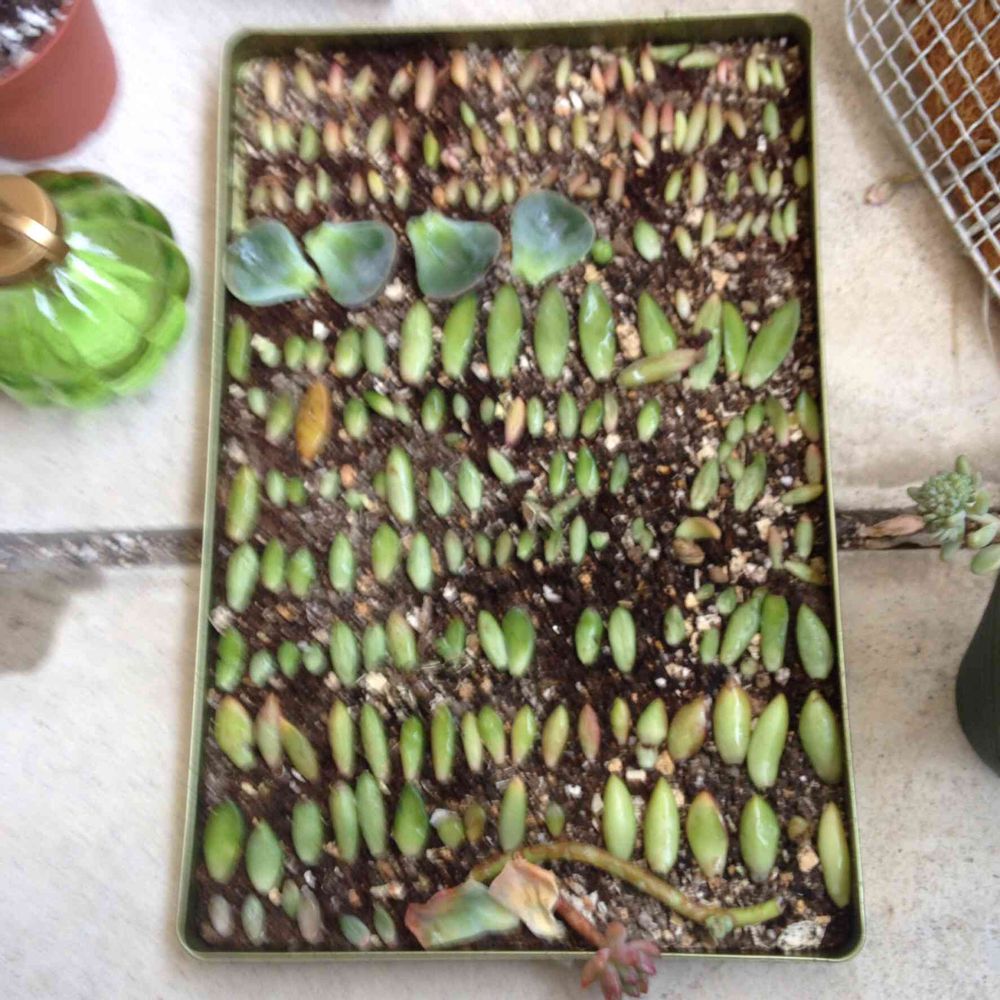 先日大人買いをした中にほとんどの葉っぱが落ちていたのと葉挿しちゃんを並べてみました。種類別に並べています(^ー^)ノ