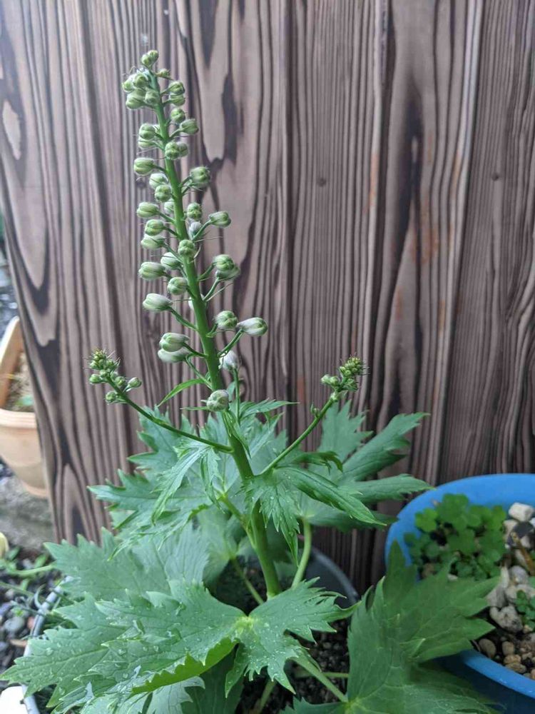 ツボミ付けています。車庫に行く、ザクロ近くには、🟣の花があります。こちらは、ピンク色です。咲いたら、綺麗だろうな!