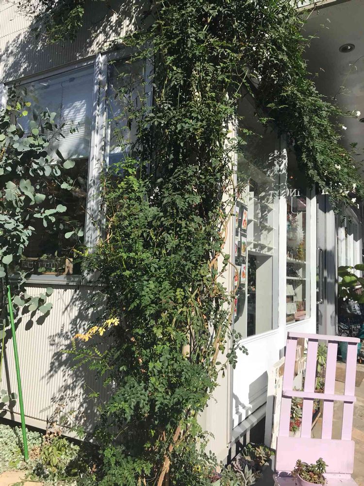 ここのカフェは、ワイヤーみたいなのを壁から少し離して張ってそこに這わせてるんですよ。まるでこうなるのを知ってたみたいです。