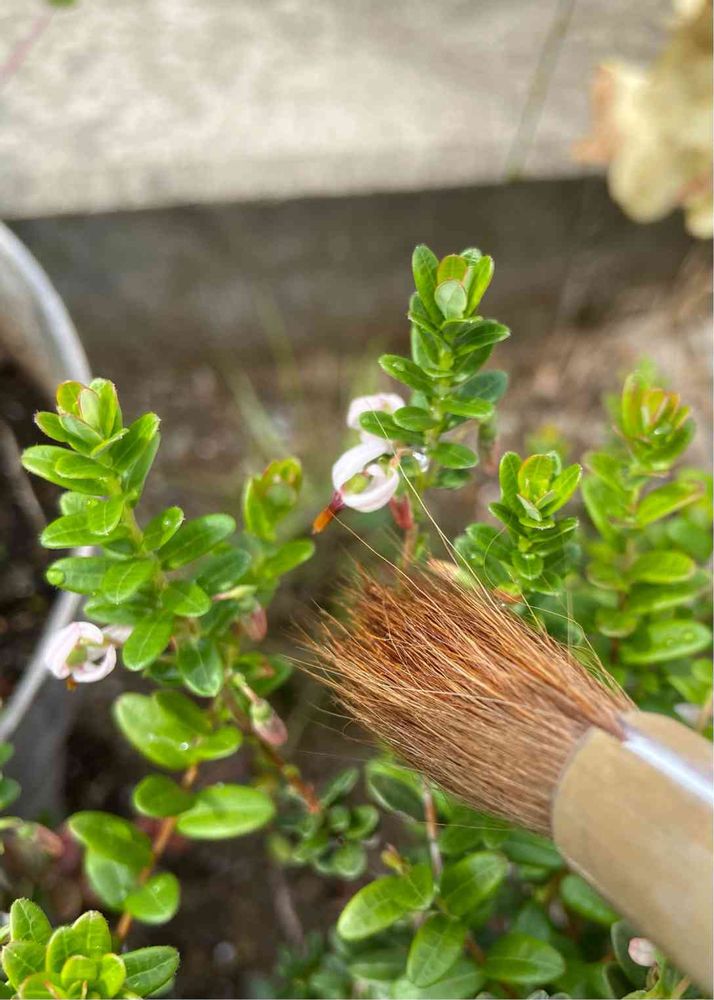 毎年花はたくさん咲くのだけど実がほとんどならないクランベリー。多めに肥料をあげたり気にかけているのだけど。今年は受粉してみた。どうなのかな。。