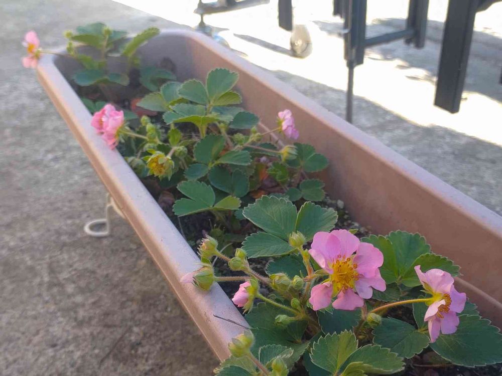 イチゴにもピンクや濃いピンクの花もあるみたいですよ✨