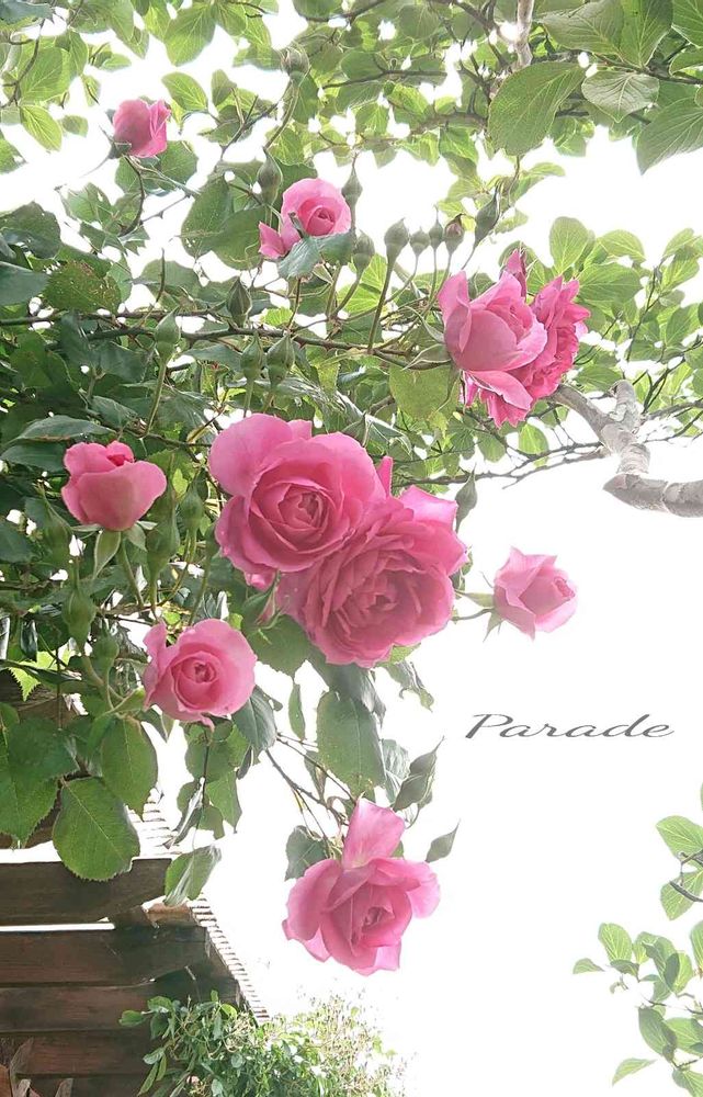パレード🌹凄い勢いのある薔薇ですよ~🎵 たくさん咲いて鮮やかなピンクが鮮やかで可愛いですよね💓