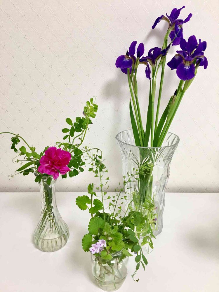 畑は野菜だけなんです。野花のお花を採りました。アヤメは実家の庭から貰いました🌼カーネーションは買った残りの花です💐picが分かりにくかったかな😅アヤメはいつも思いますが枯れるのが早いですね☝️️
