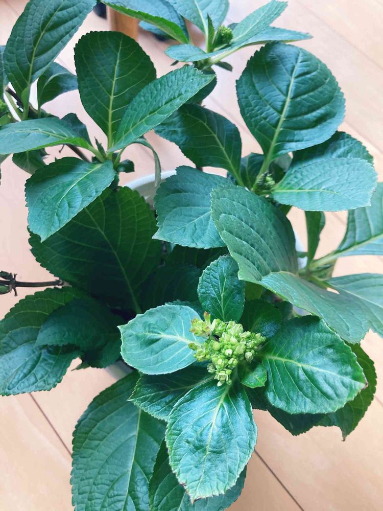 紫陽花初心者なので管理の仕方がわからず、恐る恐る世話してましたが無事に花芽が出てきました!🌿😄