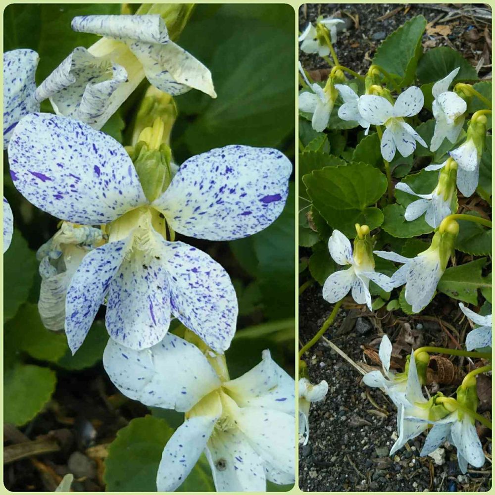 白いスミレに青い絵の具を吹き掛けたような模様が、インパクトありますね〰️🤗💕