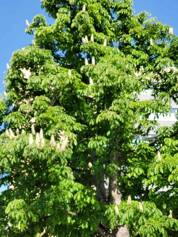 眩しいくらいの青空に向かって伸びる大きなトチの木と白い花が一段と白さを増して見えました😆