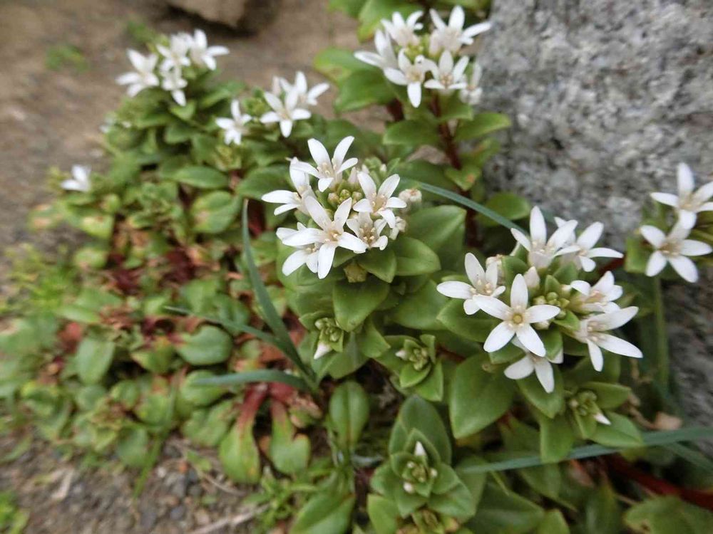海辺の岩に寄り添う星型の白色のお花さん