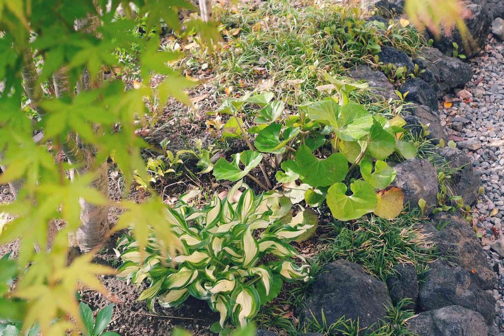 小さな庭,ギボウシ,ツワブキの投稿画像