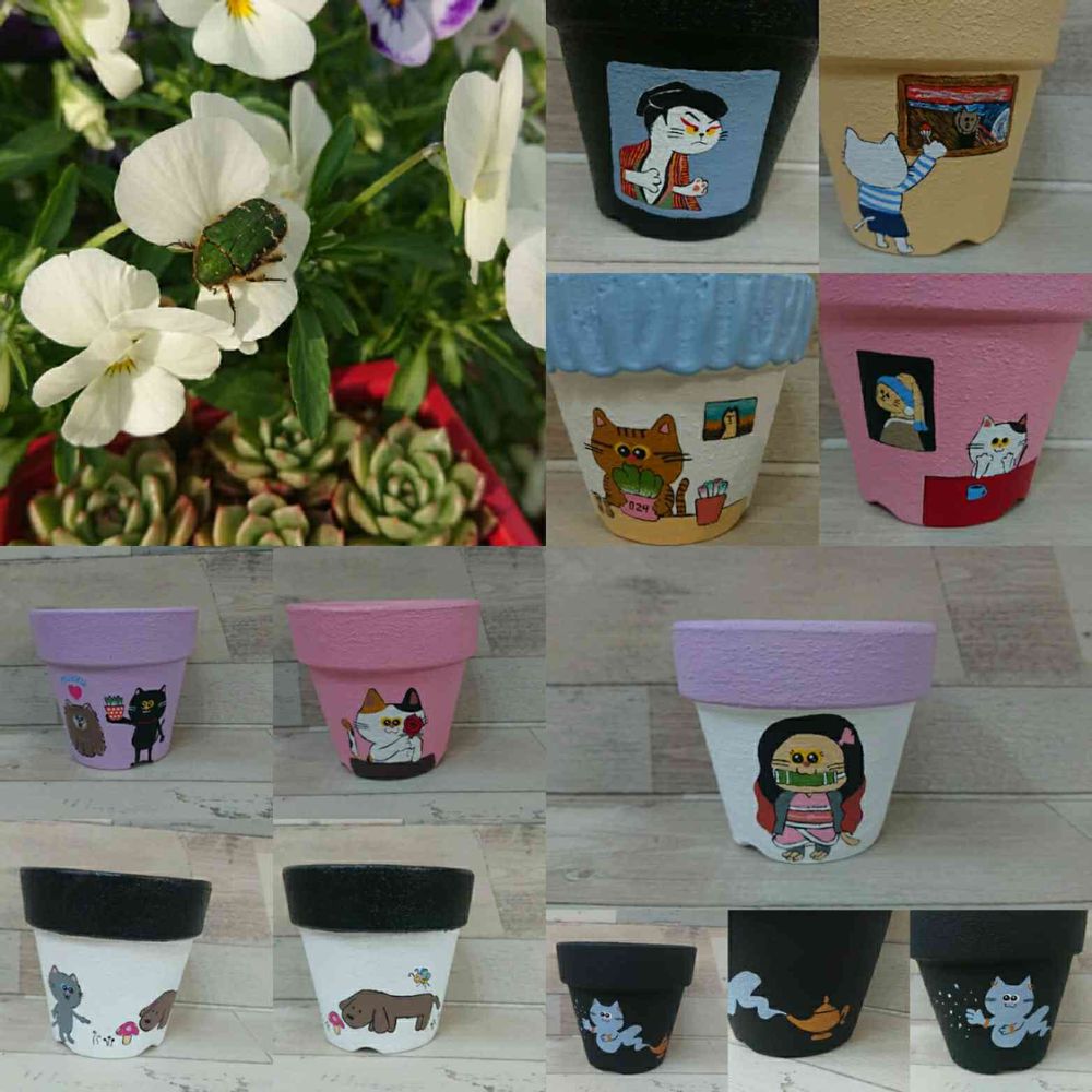 peanyatsリメ鉢を書いて貰ったが、凝り過ぎて1つ1つに時間が掛かり量産出来ず😅⤵️⤵️