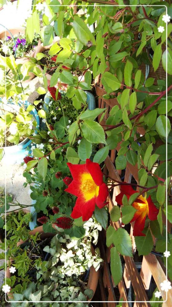 軒先の鉢植え風が当たらない所なので、早く咲きました💕