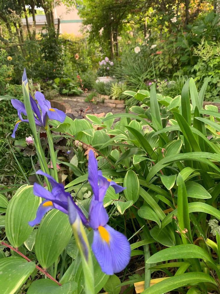 ビオラの寄せ植えに忍ばせていたアイリス⚜開花しました✨
