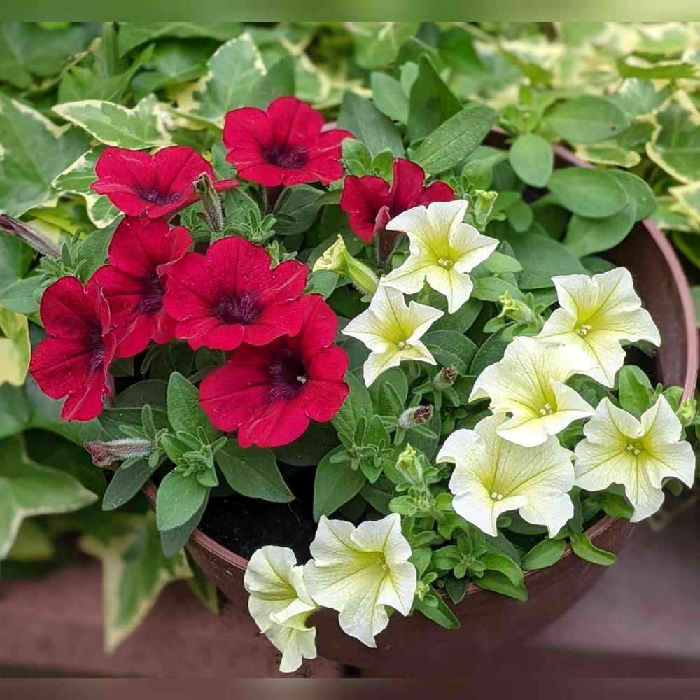 サフィニア紅白で私も気分⤴︎⤴︎です•*¨*•.¸¸♬︎