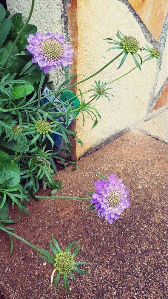 スカビオサ ブルーバルーンが咲きました。昨年お迎えして、葉っぱがフサフサするだけだったので、心配なでしたが、やっと開花♪( ´∀`)人(´∀` )♪